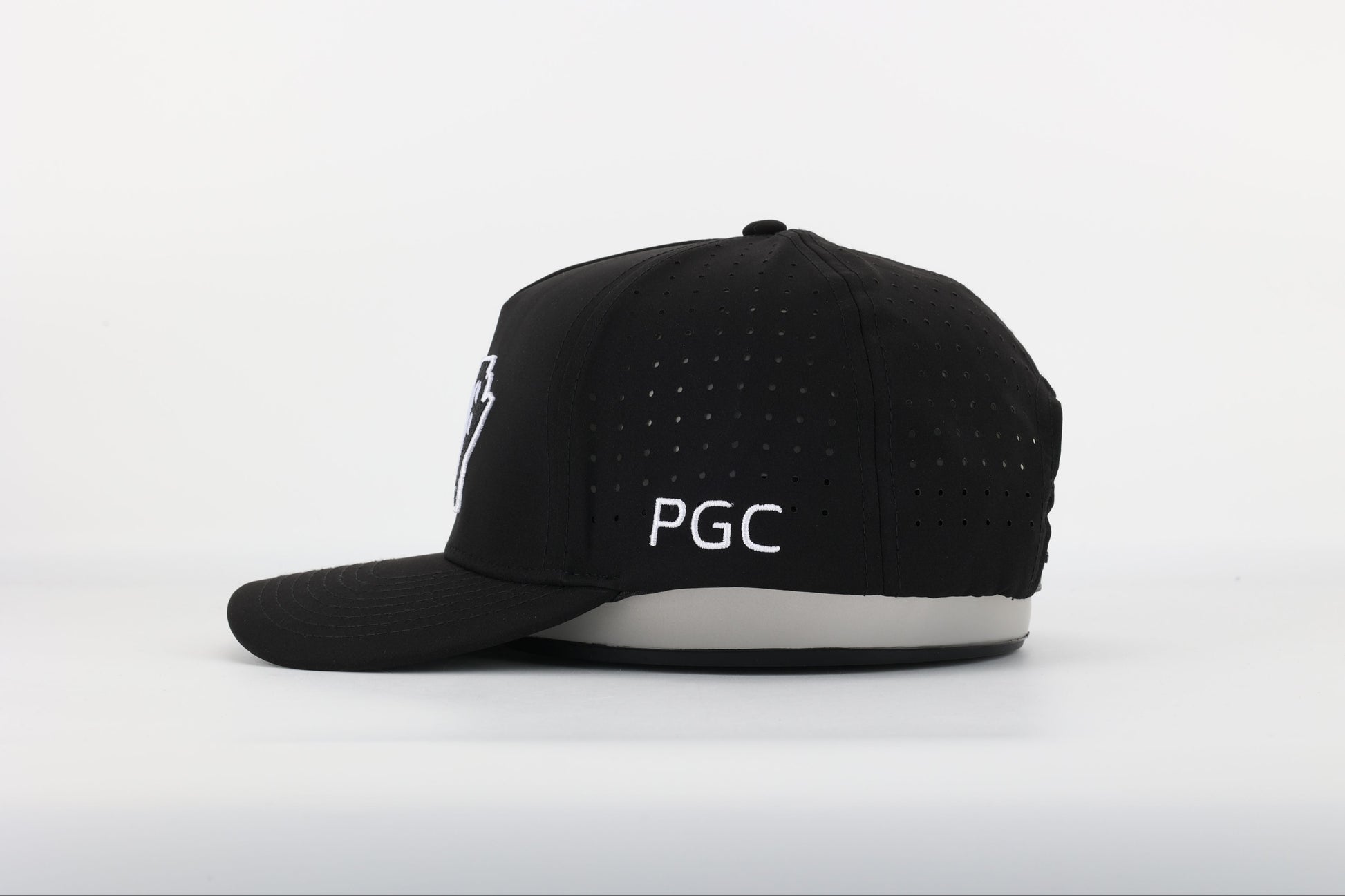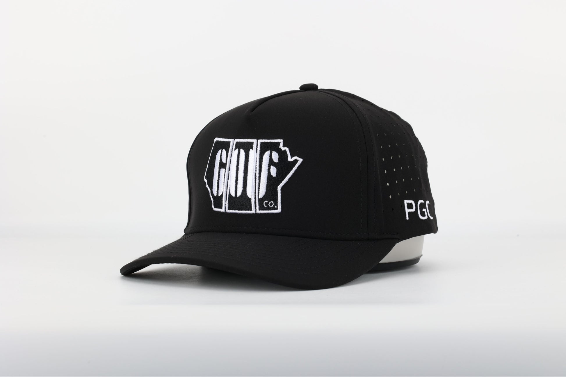 The polyester / spandex blend along with laser cut holes make this hat extremly breathable, more sweat resistant, and easy to wash. This hat also features a water resistance coating which makes it perfect for those rainy day rounds. Oh, and its feels and fits as good as it looks.