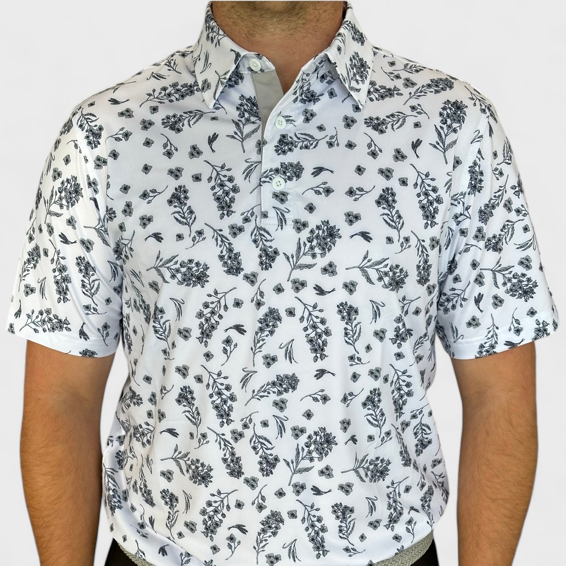 A touch of class and flash, the Harvest Polo pays tribute to the fields of the Prairies. Featuring a pattern of canola flowers and wheat strands along with a 3D printed province logo on the neck, this polo will soon become your go to piece.